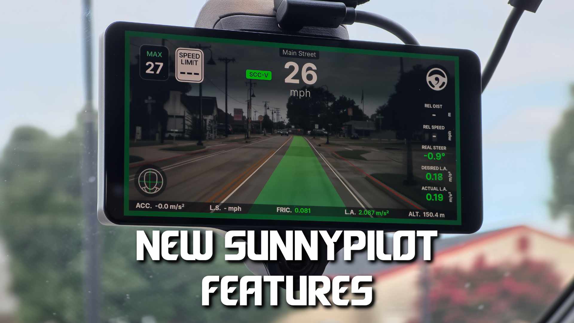 Beyond back-end controllers, Sunnypilot now lets drivers toggle on a much more detailed UI mode. When enabled, this overlay displays key telemetry right on the main driving screen, including: